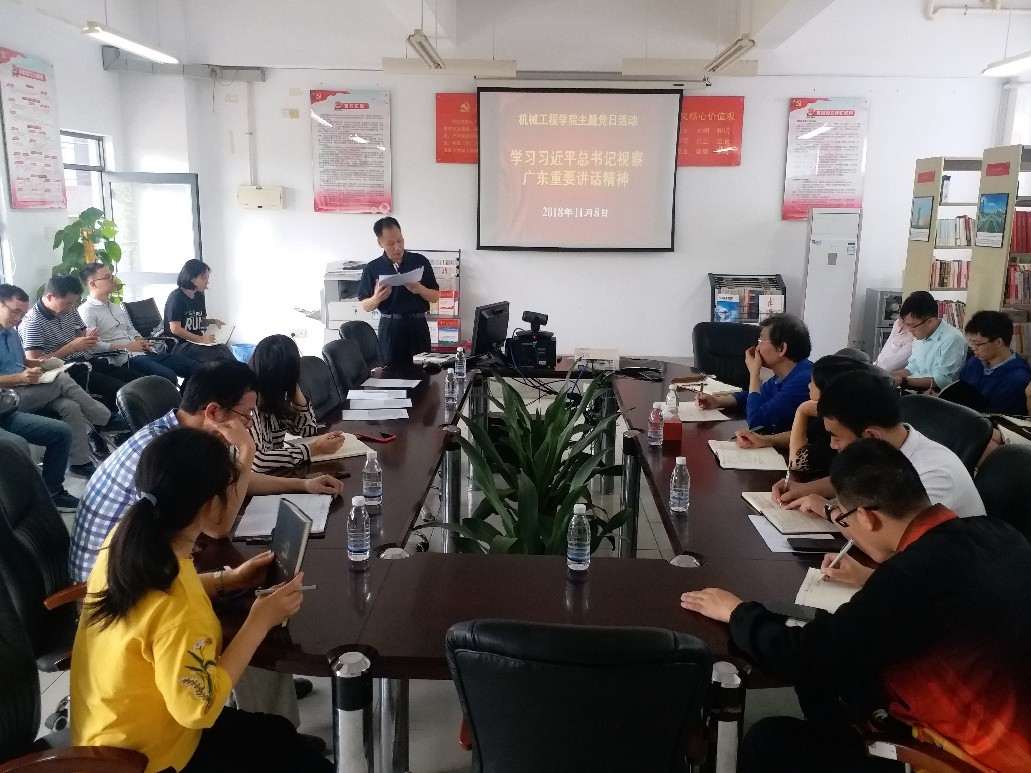 为学习宣传贯彻习近平总书记视察广东重要讲话精神,公司党总支于2018年11月08日下午在12A204开展了“学习习近平总书记视察广东重要讲话精神”的政治理论学习主题党日活动,教师党员参加了此次主题党日活动,本次活动由公司党总支副书记陈举铭主持。