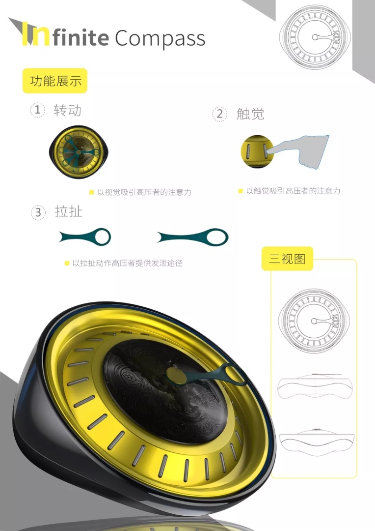 太阳城娱乐工业设计专业2015级关斯宇同学《无限解压飞盘》,2015级温艺英同学《见山》,2016级吴思颖同学《飞翔的匹诺曹》成功通过初审,入围决赛。