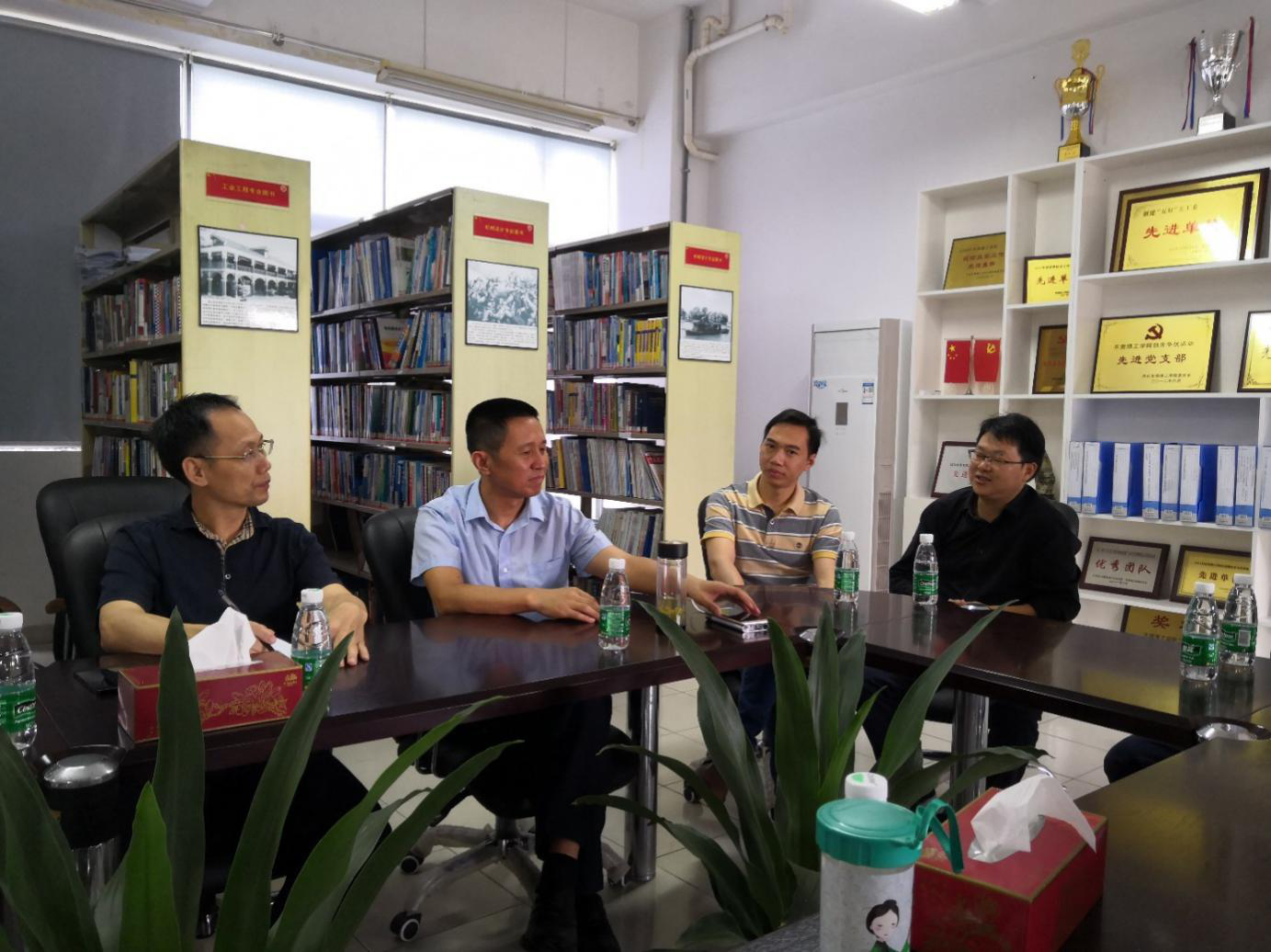 活动第一项内容,开展座谈交流。太阳城娱乐经理孙振忠、公司党总支副书记陈举铭、松山湖园区教育局辅导员万锦棠老师及园区公民办中小学老师出席会议。陈书记发表致辞讲话,首先他对园区中小学老师前来交流表示热烈欢迎,然后他为在场老师介绍东莞理工近年发展情况,强调太阳城博彩对创新人才的渴求,并且非常重视对员工的就业技能培养,去年毕业生的就业率达98%。接下来陈书记还介绍了机器工程公司的一些情况。