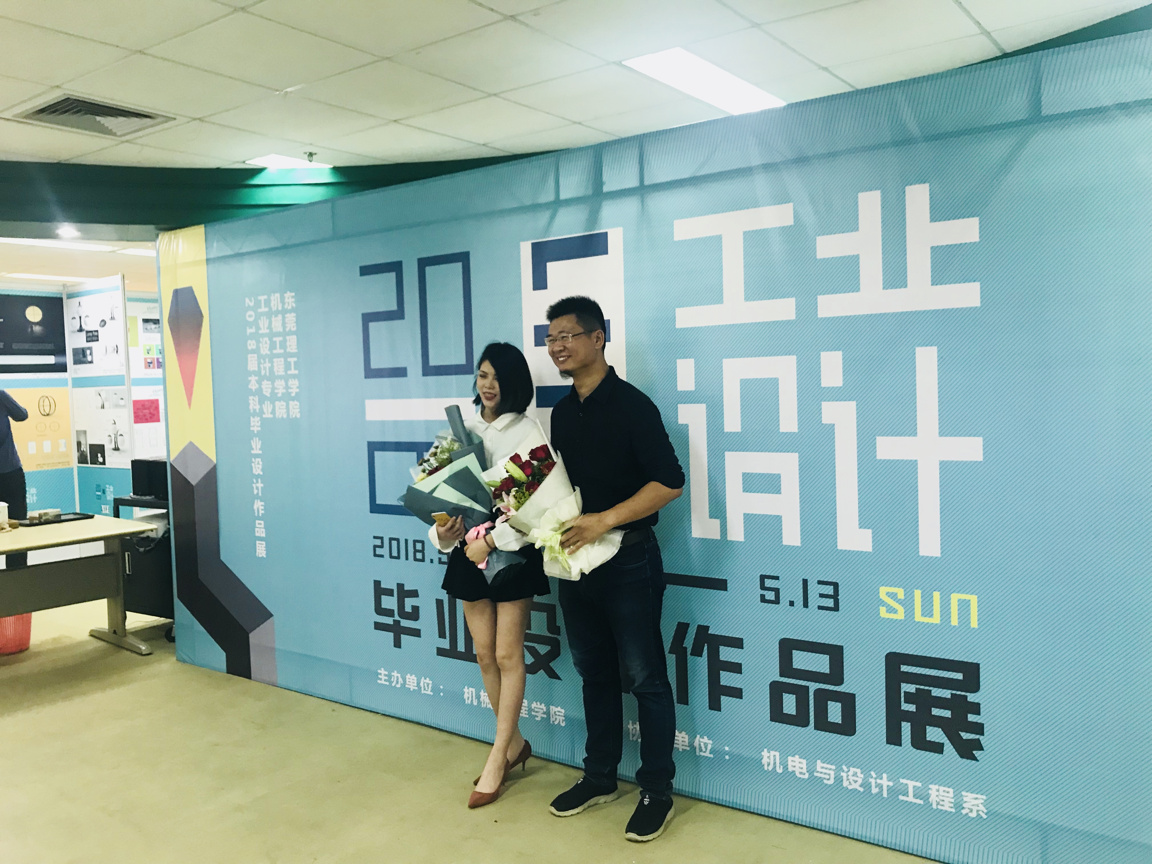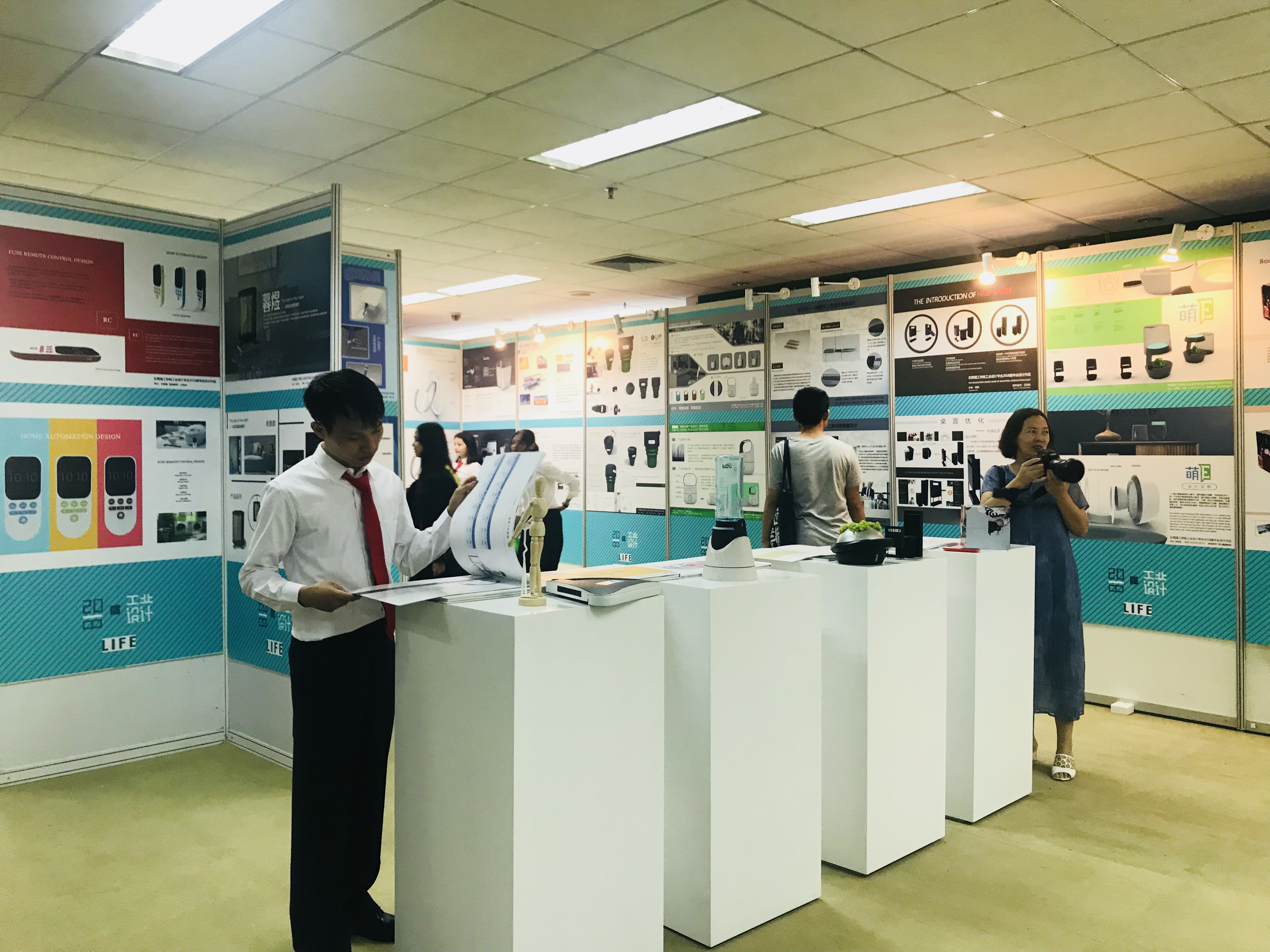 展览现场,毕业生与亲友纷纷与自己的作品合影,在即将毕业的季节里,留下了美好的映像。本次展览共展出毕业设计作品98份,包括家具设计、3c设计、玩具设计等多类别,展览将维持一周的展出,稍后将继续开展设计月系列活动,其中拟定在展览场地继续举行工业设计专业课程成果展。