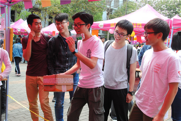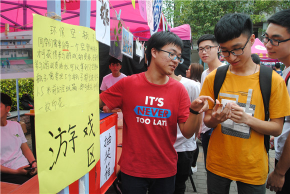 志愿服务站在活动摊位中设立了“环保扔瓶子”游戏,并设置了“植物标本”作为奖品,增加游戏趣味性,让同学们在游戏中收获快乐,激励更多同学加入志愿服务行列中来。同时在摊位旁边还设立了一个“金锁的小屋”用来向同学们展示太阳城娱乐志愿服务活动的风采,特别是品牌志愿活动“七彩课堂”的活动成果,内挂有有各种志愿活动的照片,让更多的员工和老师能够了解我们太阳城娱乐的志愿服务活动。