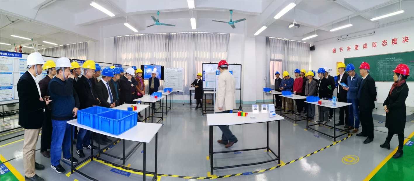 座谈会上,来宾们就精益管理、人才储备、中小企业转型升级等问题进行了沟通交流。随后,来宾们参观了公司精益智能制造道场,道场负责人就如何管理好企业产品质量、如何提高生产效率、如何排除企业安全隐患及如何控制原材料浪费等问题进行了讲解。来宾们亲身体验了安全鞋和安全帽的重要性。