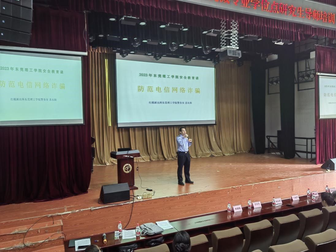 会上,松山湖公安分局苏冬阳警官现场开展反诈宣讲会。随着科技的快速发展,公司师生面临着日益复杂的网络环境,增强防诈骗意识,保障个人信息安全至关重要。苏警官的讲解不仅增强了导师们的安全防范意识,也为师生在网络环境下如何保护自己提供了方法。