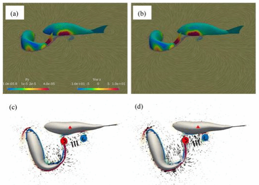论文通过实验观测鱼类的运动特性,结合高性能计算机模拟,系统地研究了鱼群在快速转弯过程中的运动特性和能量利用机理。研究发现相比于鱼群在巡游过程利用周围个体产生的涡动能的提高运动效率,它们在快速转弯过程中通过合理的空间排布与相位滞后,也可以利用周围鱼类运动产生的涡动能,从而实现更快的瞬时平移和转弯速度。在特定情况下,尽管滞后的运动耽搁其快速运动的时间,但是其带来的益处能使鱼体产生更快的全局转动角速度。这种现象与我们熟知的“磨刀不误砍柴工”相合,《科学之光》有评论称,这个发现的哲学逻辑与美国海豹突击队格言“slow is smooth, and smooth is fast”一致。