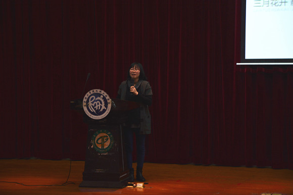在齐唱团歌后,黄楚刁老师忍不住想上台和大家分享自己的感受,她对团学成员的成长感到欣慰,希望大家做好自己该做的事情,用一颗年轻的心闯一段自己的青春,在繁忙的工作中能持续上进,坚持学习。