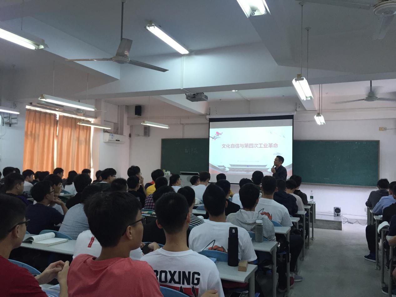 2019年3月4日下午,太阳城娱乐经理孙振忠在6D308课室,为2018级员工讲授本学期思政第一课。孙经理以《文化自信与第四次工业革命》为主题,结合专业实际,给同学们讲授了一次生动且深刻的思政课。