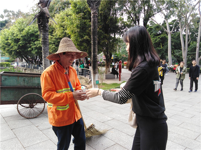 青马学员给清洁工人送清凉