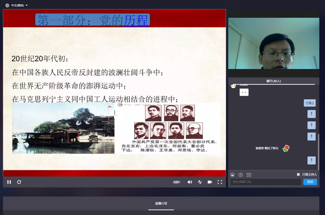 钟守炎书记作了动员讲话。强调参加入党积极分子培训学习的重要意义,同时对入党积极分子提出了明确要求和殷切希望。钟书记强调,同学们要珍惜机会,认真学习,力争取得较大的收获。特别是在居家抗疫期间,努力克服可能面临的技术、网络与交流等各种各样的问题,在在线教学或互动交流过程中,积极构建主动学习、共同进步的和谐氛围,树立入党积极分子的良好形象。希望同学们联系实际,学以致用,学会正确对待得失,时刻想着中心大局,想着服务群众,自觉在奉献中磨练党性修养,增长才干。