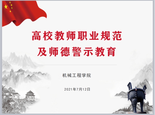 会上,郭建文首先组织全体人员强化学习《新时代高校教师职业行为十项准则》、《教育部关于高校教师师德失范行为处理的指导意见》等文件精神,在全体教职工中开展准则的宣传解读和贯彻落实,帮助其全面理解和准确把握准则内容,做到全员全覆盖、应知应会、必会必做,切实增强了做好师德师风建设工作的思想自觉和行动自觉,进一步推进了机械教师队伍建设内涵式发展。他提出要将“四史”学习作为全体教职工思想政治“必修课”,结合建党百年系列庆祝活动,以党史学习教育为主线,强化“四史”学习教育,用党史精神谱系涵养师德。