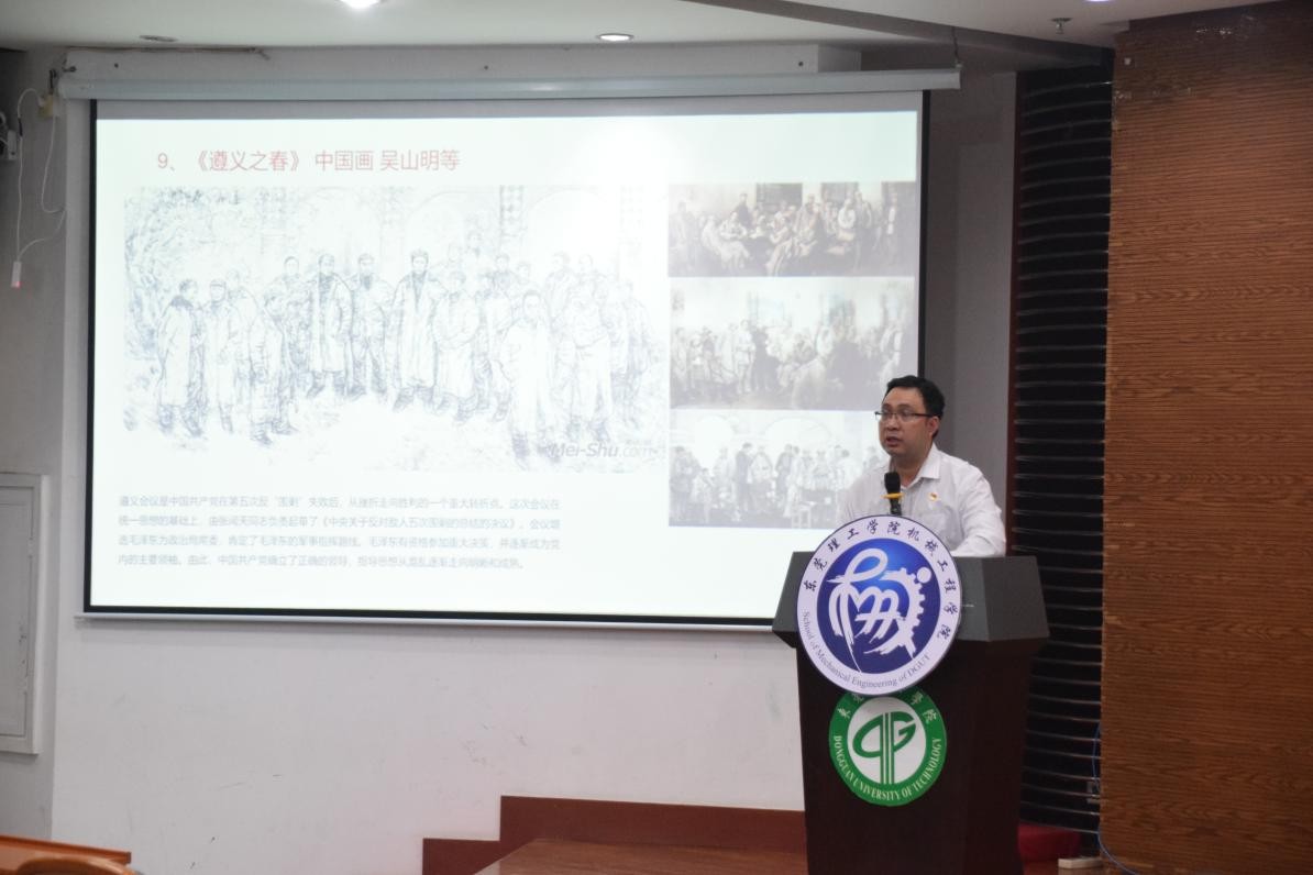 11月19日晚上,太阳城博彩公司党委副书记、副经理郭建文于学术交流中心报告厅向公司员工干部、党员、入党积极分子以及机械青马班学员讲授题为《美术经典中的党史》的党课。