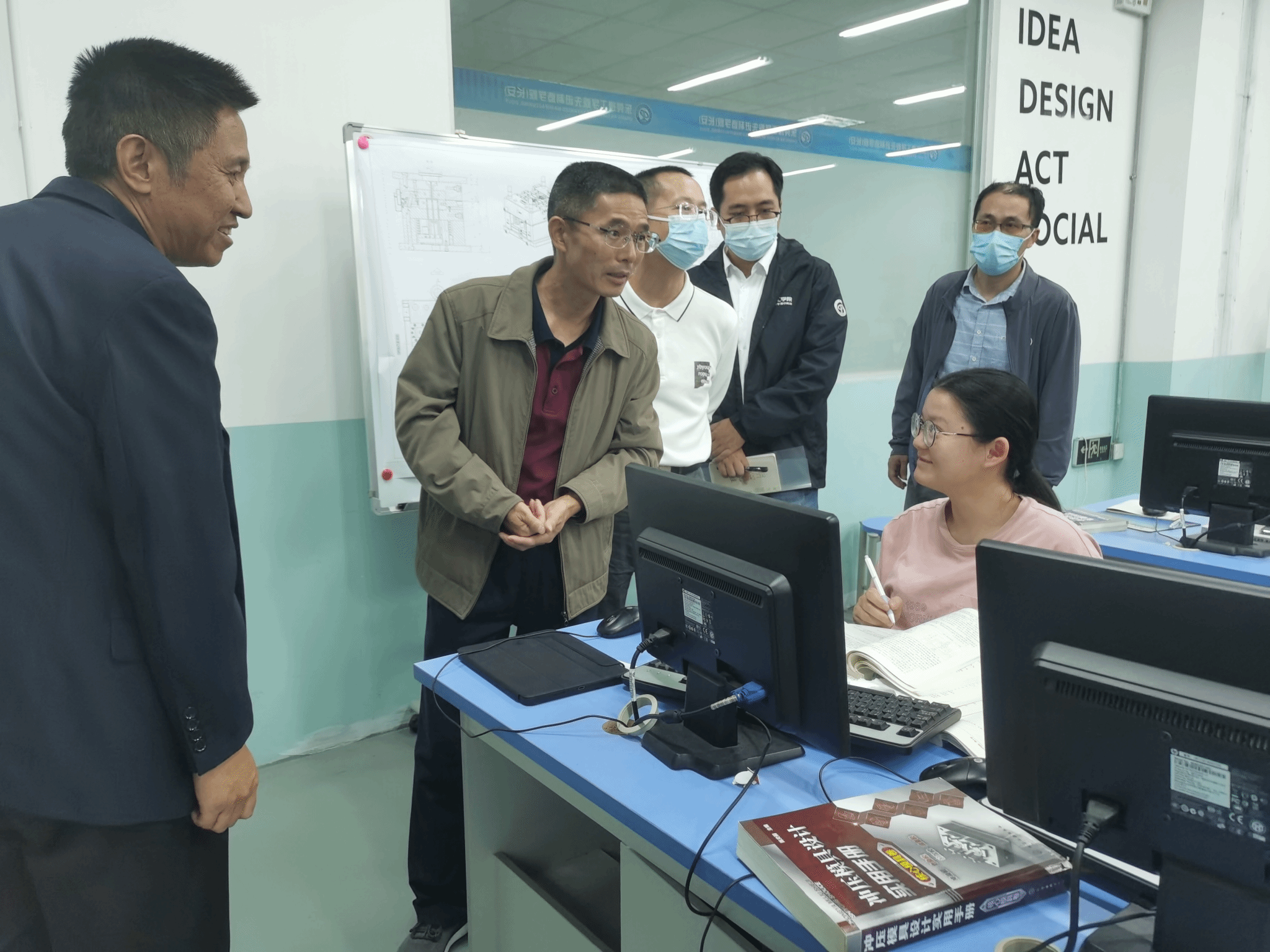 赖日辉一行先后实地考察了产学一体化楼一楼产业园车间及智能装备联合实验室、五轴数控加工实训中心,二、三楼公司党建活动室、创新创业实践平台、精益智能管理道场、员工学训室、教室和办学成果展等党建和教学科研平台,考察了公司食堂、校园公共空间等场所安全管理和环境卫生等建设管理情况,现场察看了员工上课、实践和校园活动等情况。每到一处,赖日辉都与员工、教师和工作人员亲切交谈,重点询问了解公司产学合作、人才培养、员工学习与生活等方面情况及面临的困难等问题,同时与工作人员开展座谈交流。