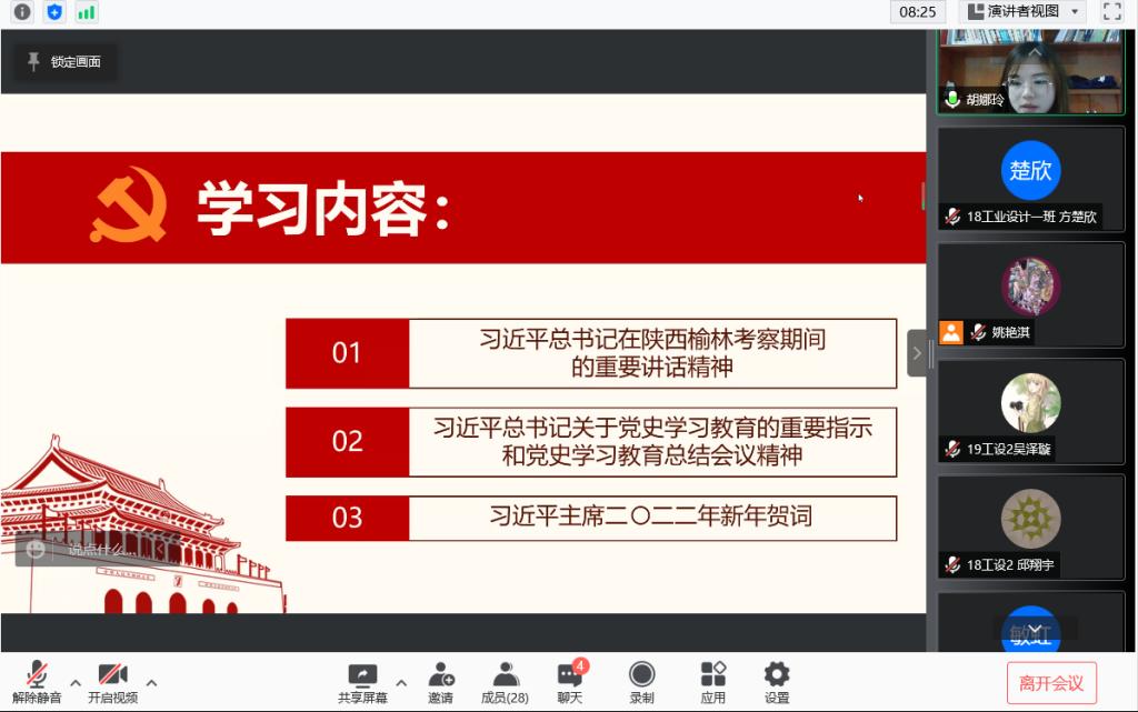 2022年1月25日,太阳城娱乐智能制造本科生第二党支部以“向历史致敬,向未来出发”为主题开展了主题党日活动。活动通过线上形式召开,支部全体党员参与了本次会议。会议首先学习了习近平总书记关于党史学习教育的重要指示和党史学习教育总结会议精神以及2022年新年贺词。支部书记顾萱萱带头学习了党史学习教育总结会议精神,并回顾了支部近期的党史学习成果,总结了相关经验,强调要把思想与行动统一起来,不断在党史学习中...
